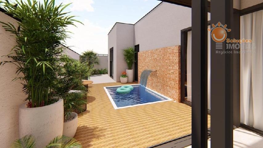 Linda Casa NOVA térrea com projeto moderno contendo 03 dormitórios todos suítes, sala de estar, sala de jantar com cozinha integrada, espaço gourmet, pé direito alto, lavabo, área de serviço, piscina, 04 vagas de garagens sendo 02 coberta, fino acabamento, preparado para ar condicionado , aquecedor solar, Condomínio com Academia, Salão de Festa, play Ground, Quadra poliesportiva, Salão de festas, pistas de caminhada, e muito verde; Proximidades com: Bares e Restaurantes, Escola, Farmácia, Shopping Center, Supermercado, etc..