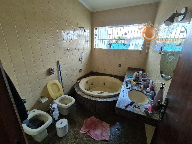 Casa com 04 dormitório sendo 01 suit com banheira, sala de estar, sala de jantar, copa, cozinha, lavabo, 03 wcs social, edícula com dormitórios e wc, salão de festa com piscina, espaço gourmet, sauna com wc, canil, amplo quintal cozinha, 06 vagas de garagens sendo 02 coberta.