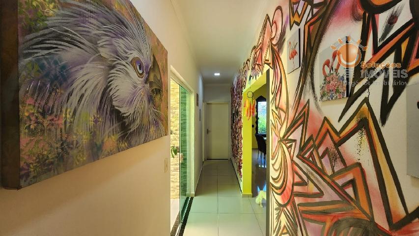 LINDA CASA TÉRREA COM 03 DORMITÓRIOS SENDO 01 SUITE, SALA DE ESTAR, SALA DE JANTAR, COZINHA COM ARMÁRIOS, WC-SOCIAL, ÁREA DE SERVIÇO, ESPAÇO GOURMET, 02 VAGAS DE GARAGENS SENDO 01 COBERTA, QUINTAL, JARDIM;