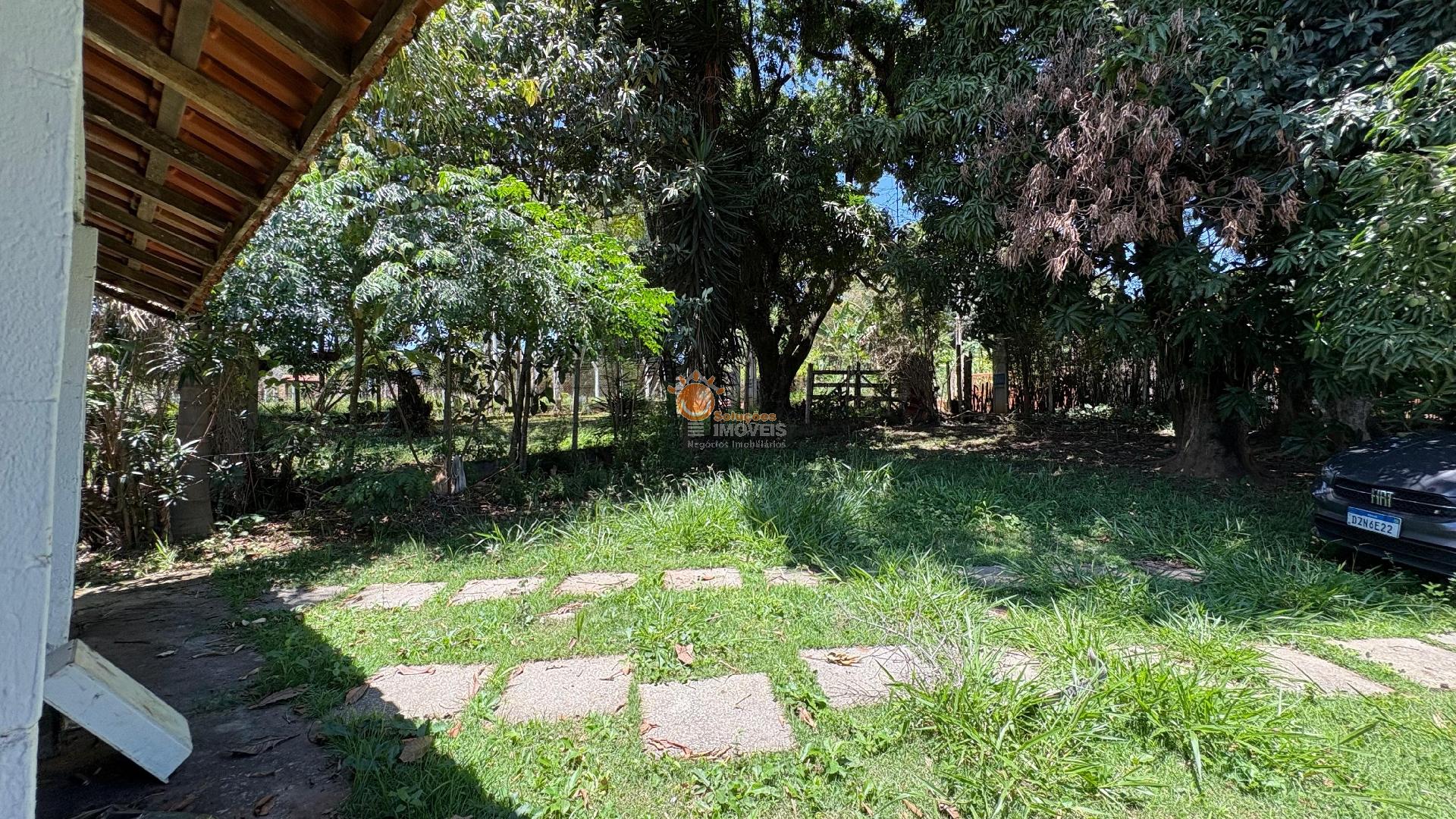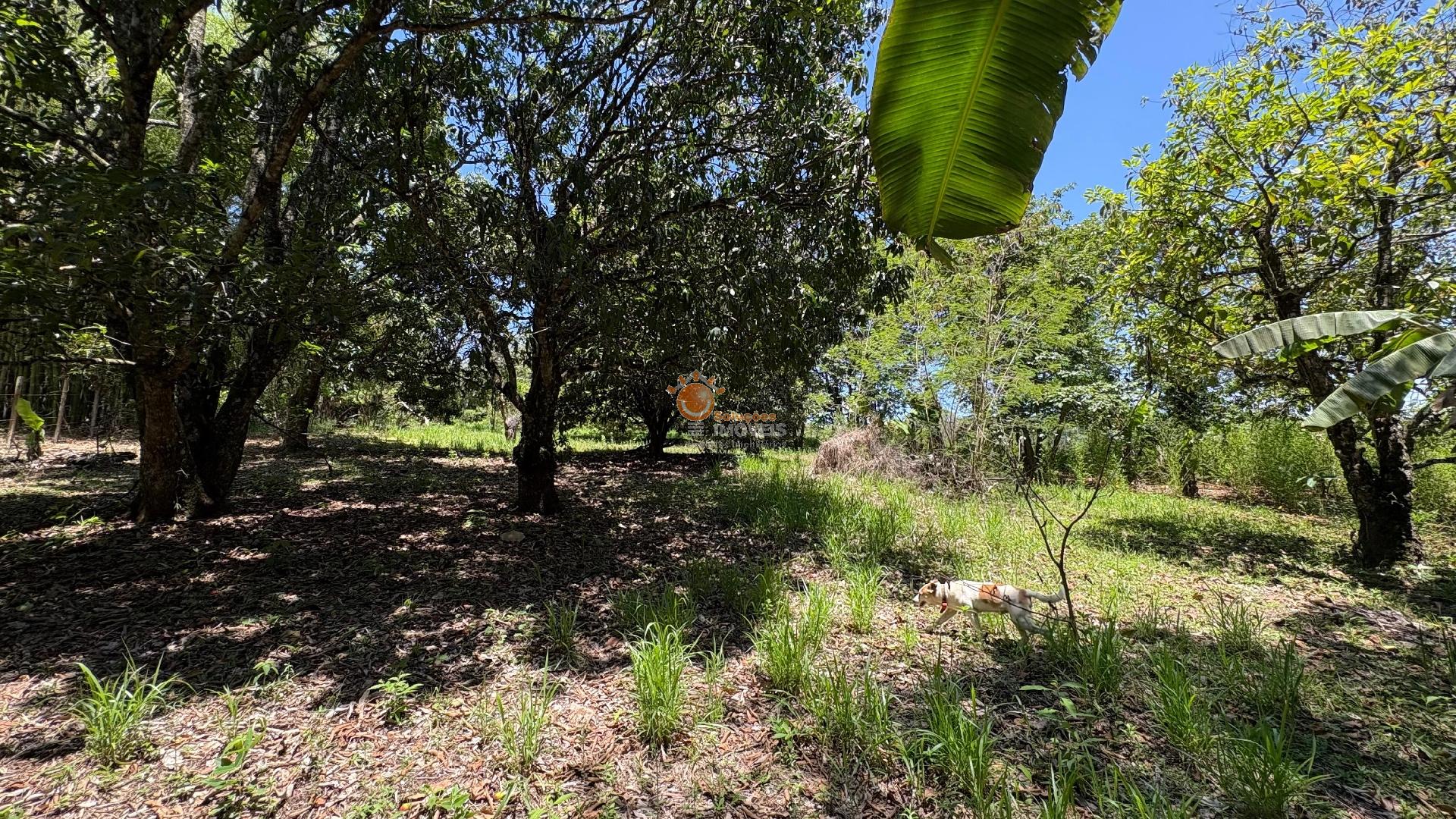 Vegetação e Produção: Árvores frutíferas variadas (pomar); horta orgânica pronta para cultivo.