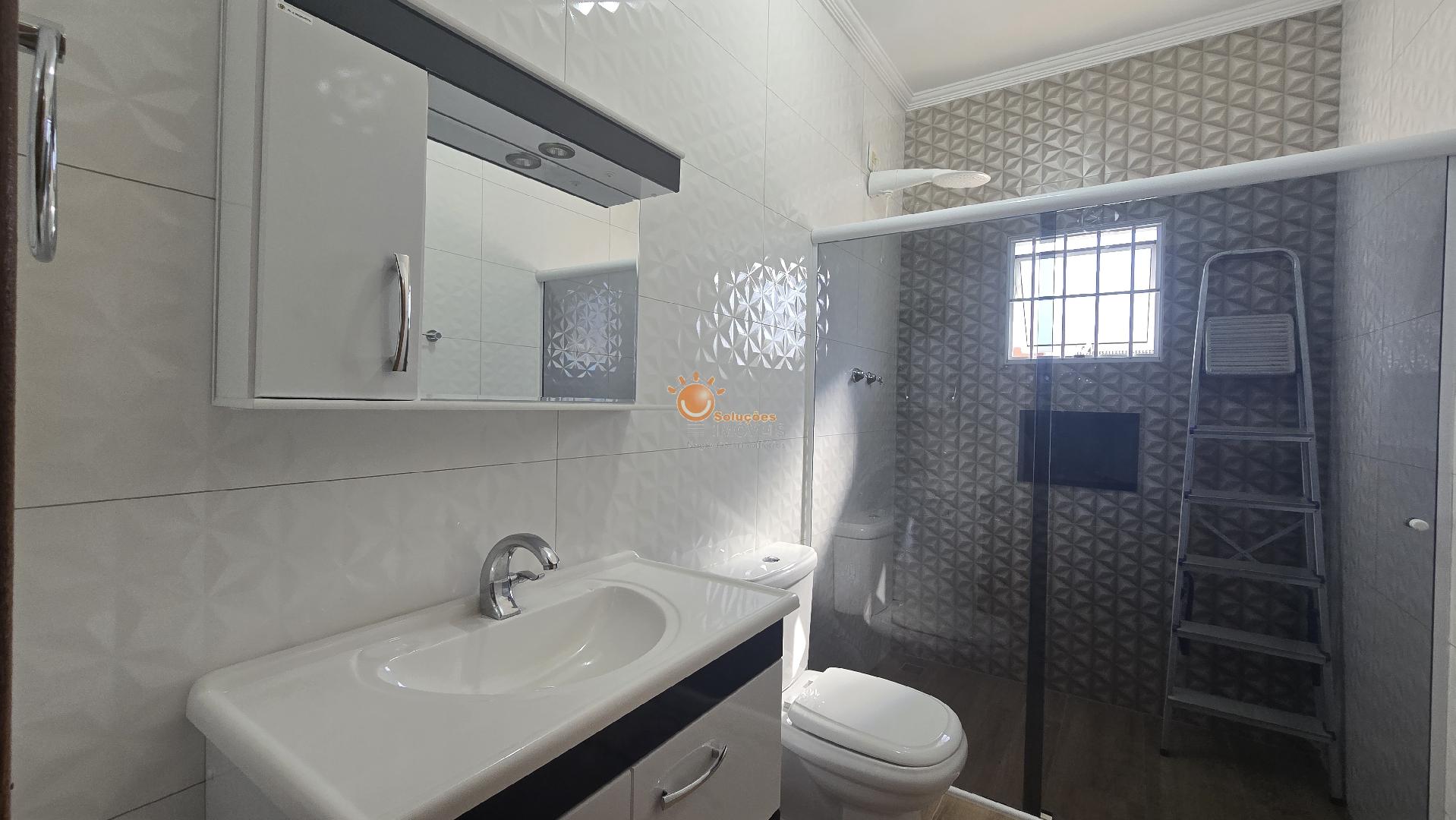 • 01 WC sociai com gabinete e espelho, box em blindex;