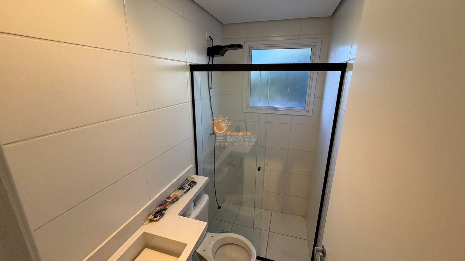 Banheiro com box de vidro e chuveiro