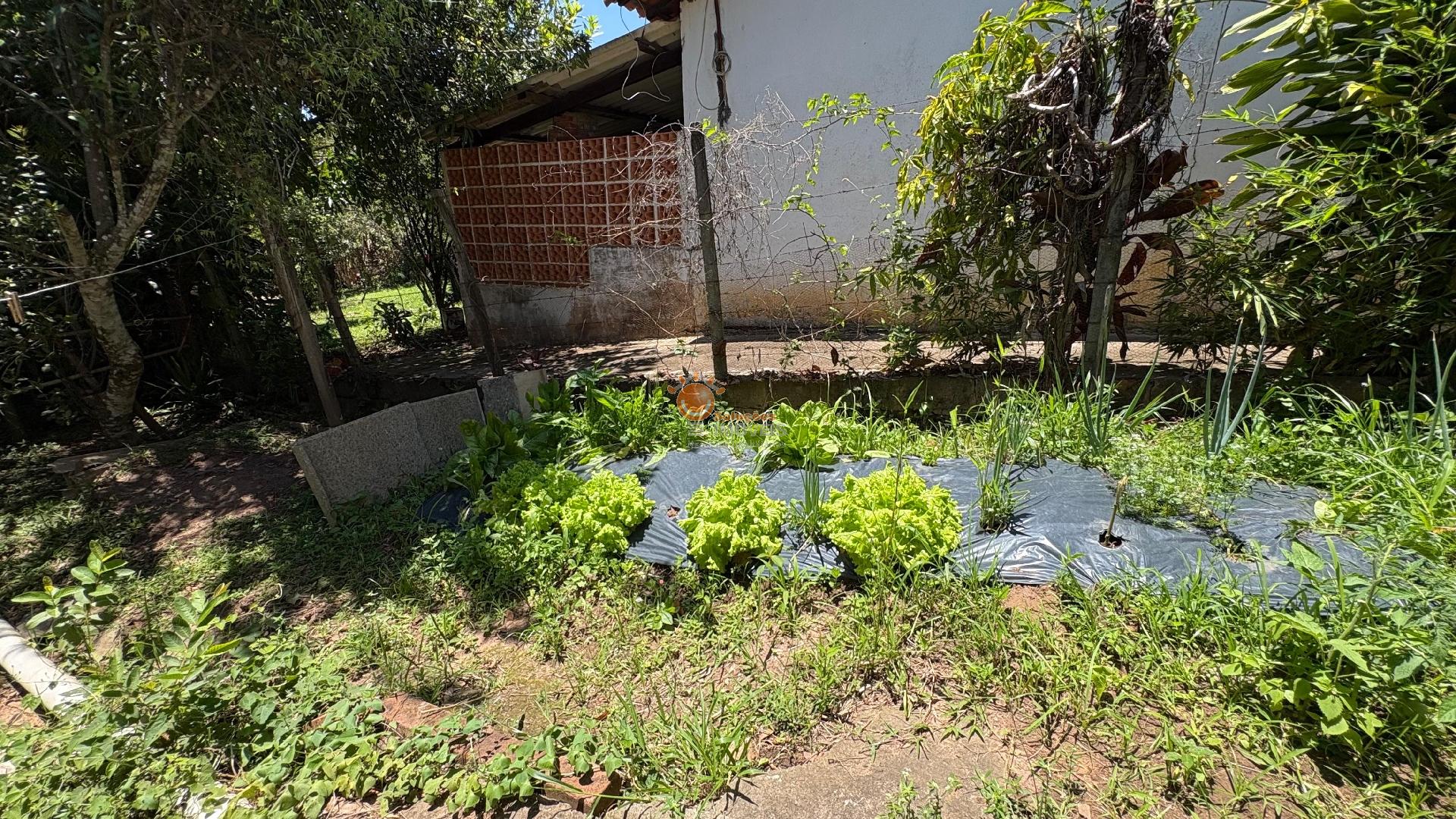 Vegetação e Produção: Árvores frutíferas variadas (pomar); horta orgânica pronta para cultivo.